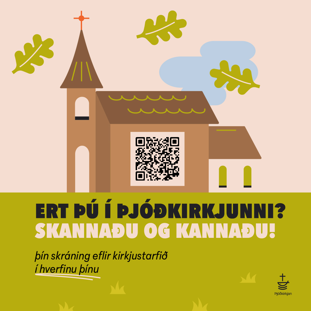 Ef þú ert ekki viss hvort þú sért skráður í þjóðkirkjuna þá getur þú skannað QR kóðann á myndinni hér að neðan til að athuga það. Þann 1.desember ár hvert eru reiknaðar út greiðslur sóknargjalda fyrir næsta ár.